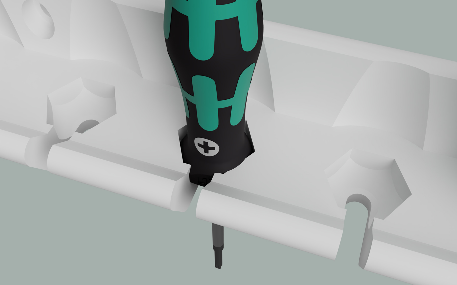 A rack that snuggly fits the unique domed hexagon shape of Wera's micro screwdrivers. Unlike the clunky rack included with Wera Microdriver sets, this vertically orients the screwdriver to make size and driver type markings readable. The rack pictured holds 6 screwdrivers, but capacity is limited only by the size of your 3D print bed. I've included download links for various sizes. Designed to mount with #6 or #8 round head screws.