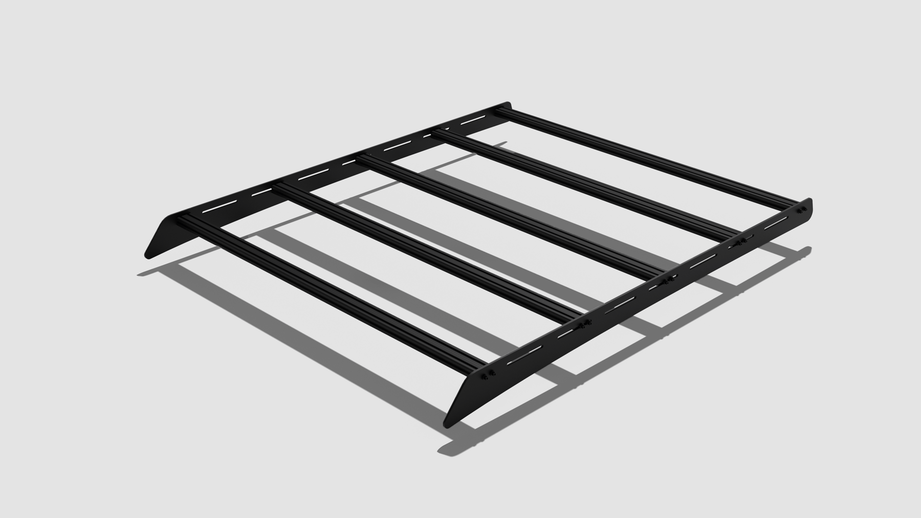 I designed this aluminum roof rack for my truck (2013 Toyota Tacoma). The side panels were waterjet cut from 1/4" aluminum plate. They're connected by 2" x 1" aluminum extrusions which can be adjusted, added, or removed as needed for each application. Any number of accessories can be added to the bars using 1/4" t-slide nuts.