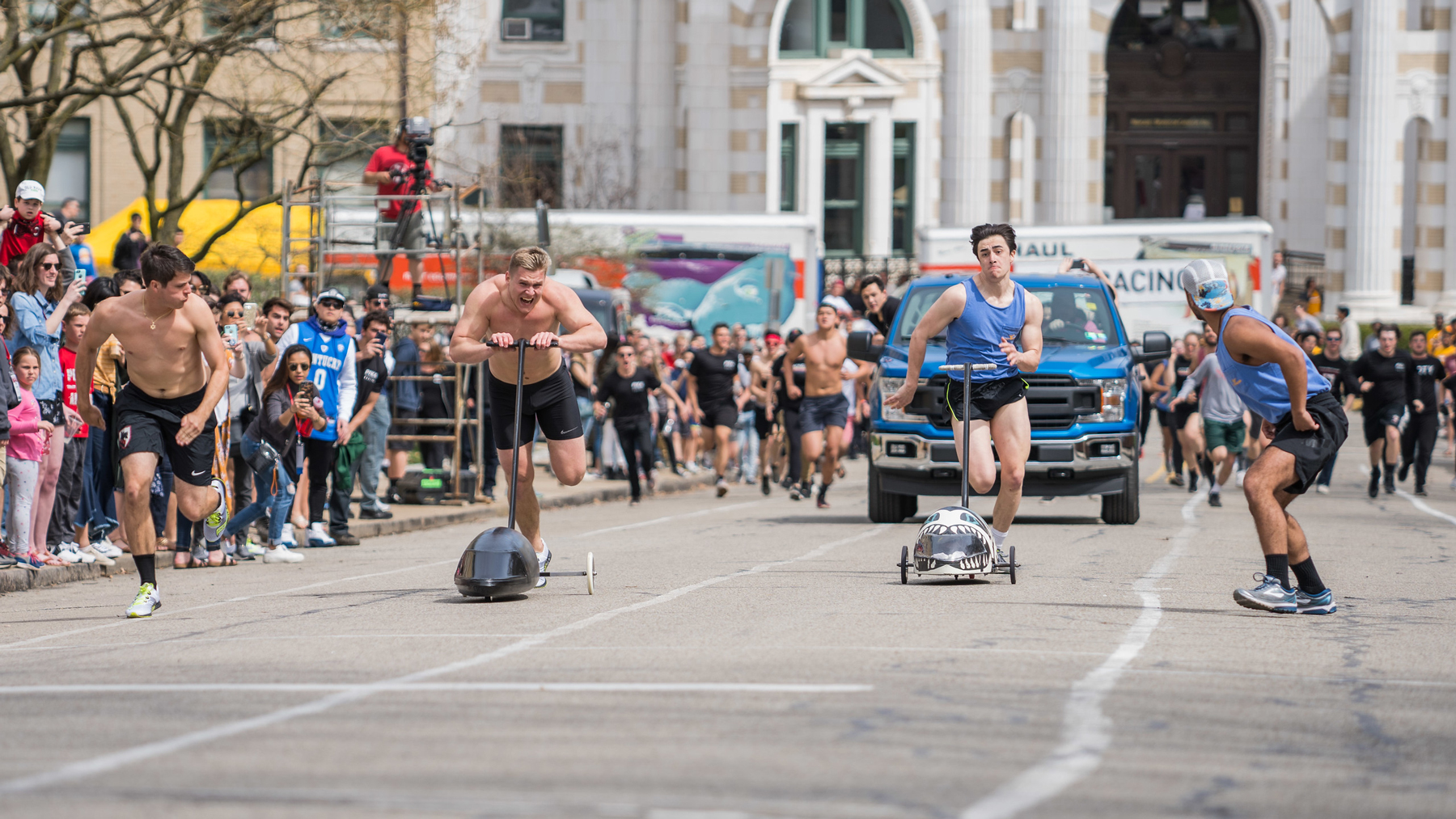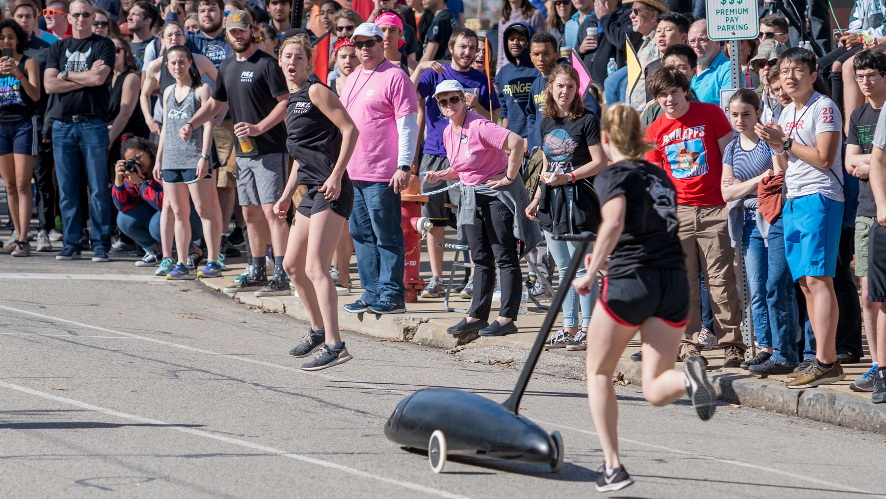 Buggy teams spend all year building, testing and perfecting their buggys, with practice races held most Saturday and Sunday mornings. The 2-day penultimate event, attended by alumni from across the country, residents of Pittsburgh, and CMU students is held every April during CMU’s “Spring Carnival” break from classes. Up to 3 buggies face off in each heat, but the overall race format is time trials with the fastest time of the weekend being crowned the champion.