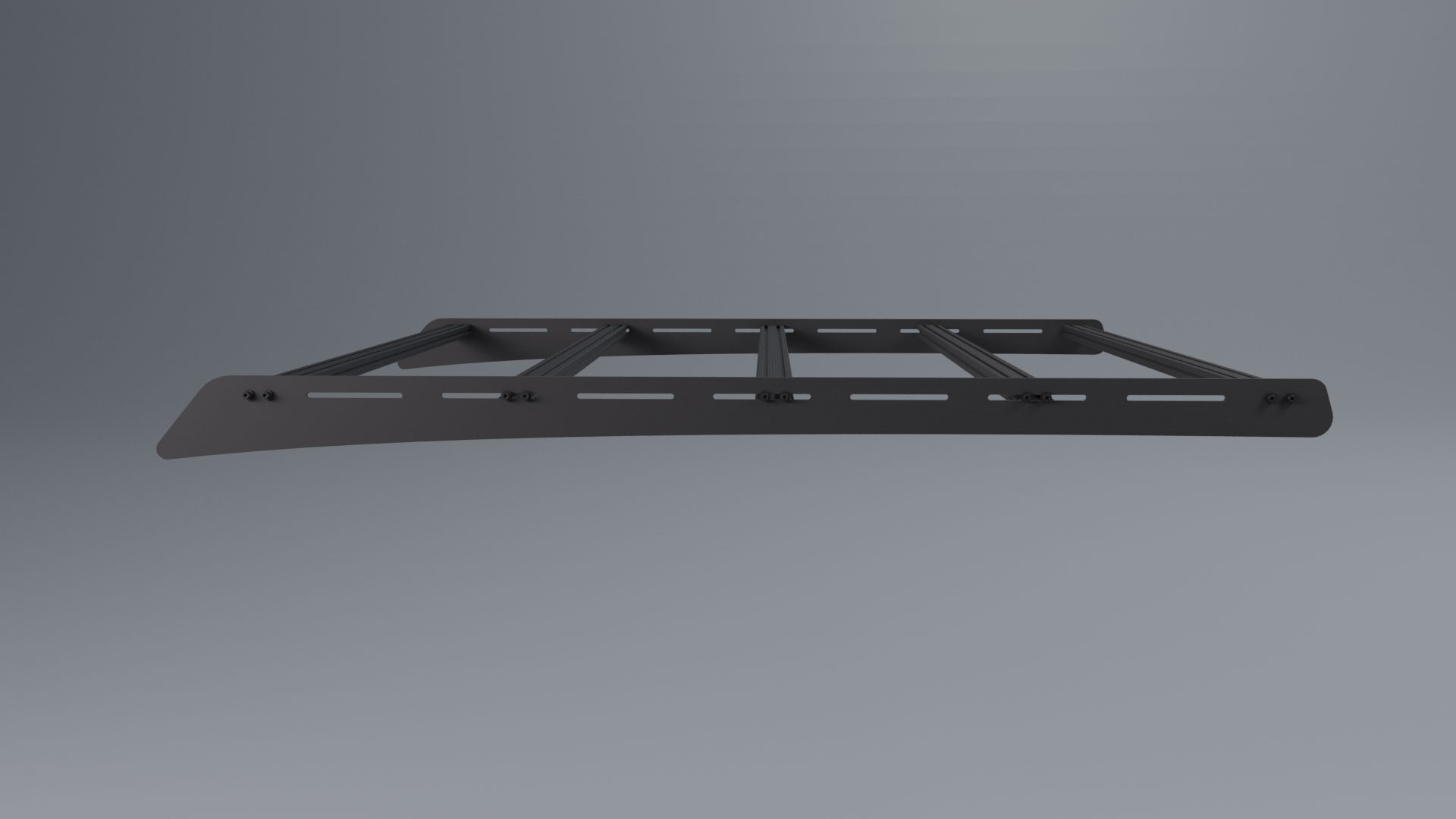 The rack mounts to the truck on aluminum brackets that bolt into factory holes tapped into the gutters on the roof. I debated making the brackets integral to the side panels, but ultimately decided seperate parts would provide room for fine adjustments. Each bracket is slightly different, accounting for the arch of the roof.