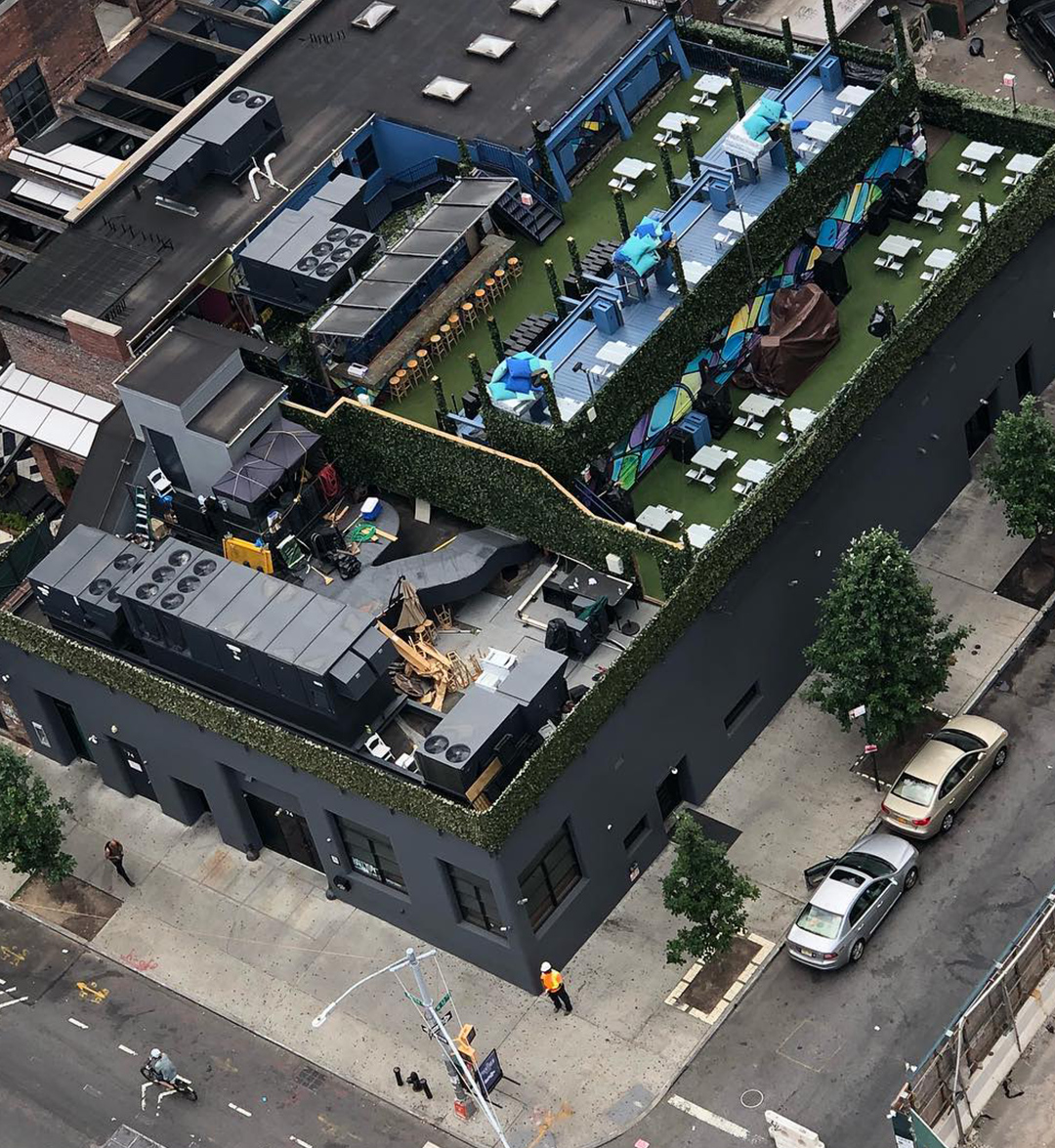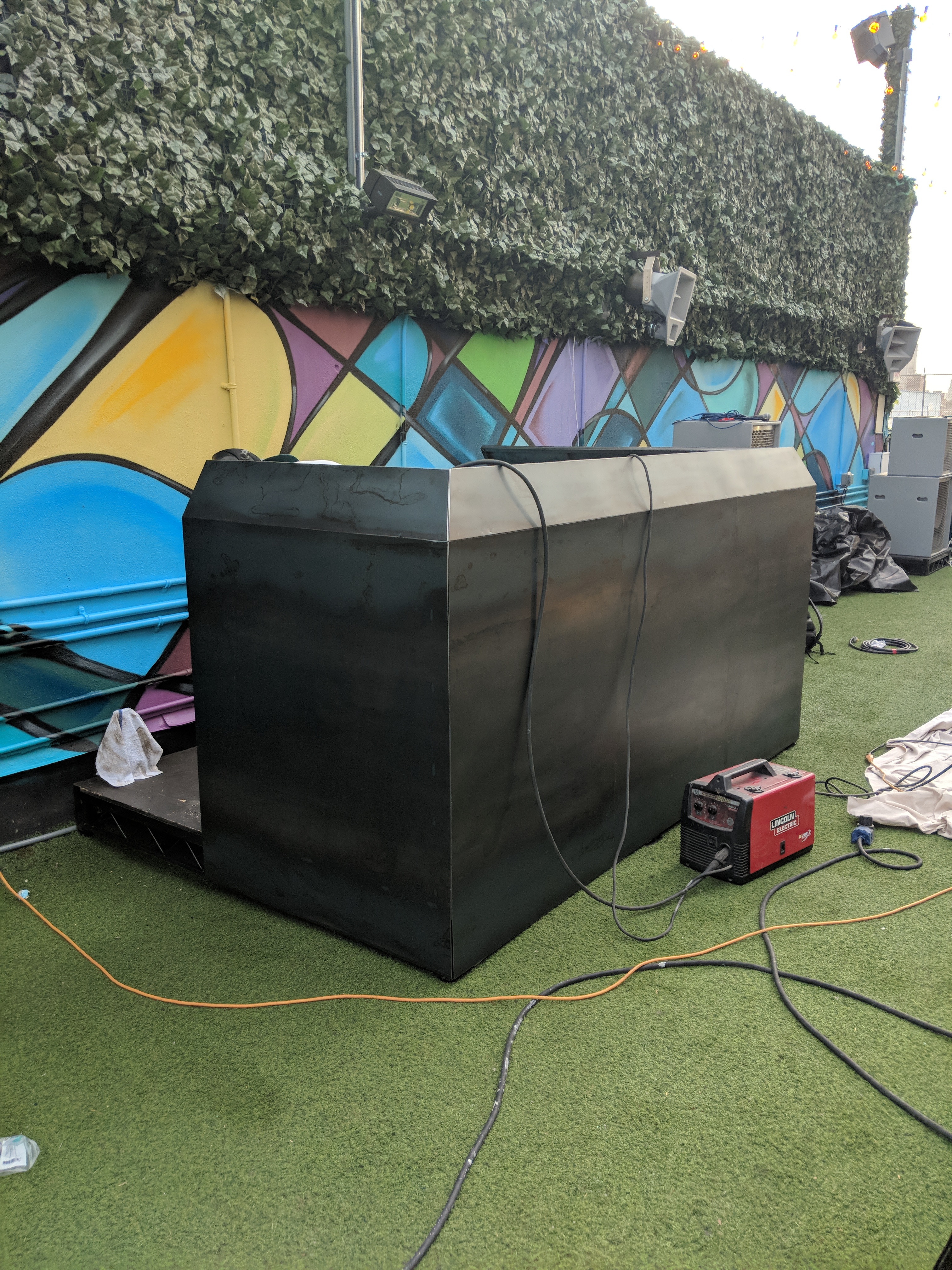 This DJ booth was crafted for The Roof terrace at Williamsburg's OUPUT nightclub. The venue was looking for a durable, functional, and unique platform for guest artists playing at their weekly rooftop events. Space on the roof is limited, so it was critical to implement a solution that would keep artists comfortable and audio equipment safe, while preserving The Roof's intimate environment.